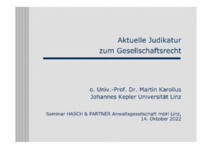 As part of professional training for our lawyers, Mr. Univ.-Prof. Dr. Martin Karollus will be a speaker on the topic of “Update on Corporate Law”.